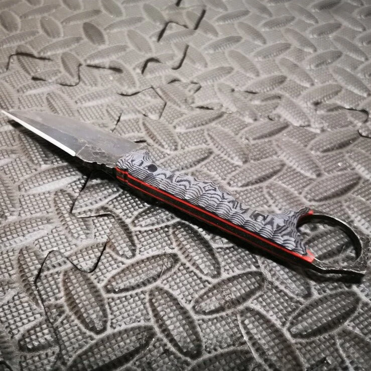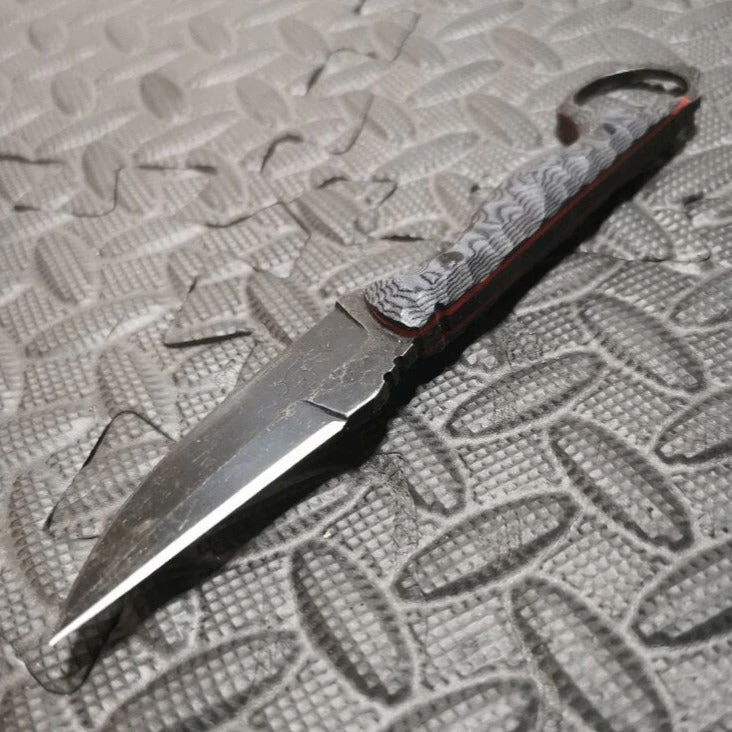 The modified drop-point has a reinforced tip that allows the bypassing of thick clothing, effortlessly. The sharpened back-edge expands the knife’s capabilities by allowing the use to use devastating retraction cuts typically seen with Pikal knives. At three inches, the blade’s length makes it adaptable for both concealment and tactical use.