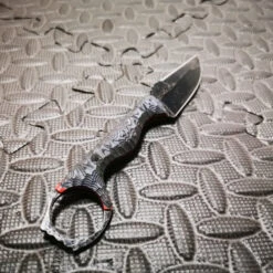 The Tie-Breaker CQC is intended to be used in close-quarters, entangled fighting. At the top of the tang, the glove-sized retention ring ensures the tool is almost impossible to strip from the user’s hand during grappling as well as keeping it secured while deploying a firearm. The top of the ring is squared off, indented, and gimped to allow for multiple indexing positions.