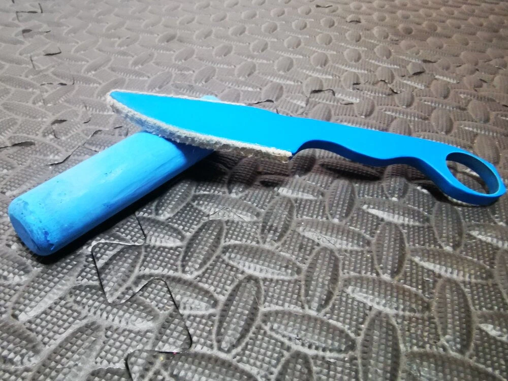 To take our trainer to the NEXT LEVEL, we have also included a special marking blade kit in every package. This industrial-strength kit includes a marking-surface strip and a special marking chalk. It is up to the end-user to decide if they wish to install this kit or leave it in the box. Installing it turns your trainer into a “Simunitions Blade”, allowing you and your partners to cut through the BS and and get visual feedback on who is getting tagged and where. This kind of training provides valuable data to increase skill and survivability.