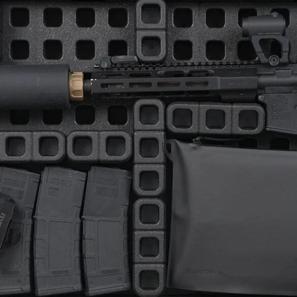 Built around the uniquely customizable DAKA GRID Organizer, each of the three DAKA Hard Cases is designed with specific rifle and gear needs in mind. The LR53 accommodates one or more long rifles or shotguns comfortably, along with much of the additional support gear and accessories you’ll need to travel with them. The GRID is made of individual Expanded Polypropylene (EPP) end Panels, center Panels, and DAKA Blocks that nest securely together to create an advanced internal system that organizes and protects everything in your case. The DAKA Blocks are easily pressed into the GRID Panels and are just as easily removed and reinstalled to fit the specific needs of what you’re carrying each time you pack up your case. As opposed to traditional foam inserts, the GRID doesn’t trap moisture, dirt, or other contaminants, and GRID wipes clean with a damp cloth. It’s lighter and endlessly customizable, allowing you to maximize more space inside your case. It’s also stronger and holds your gear in place better than traditional foam, providing better protection all around. Changing the arrangement of the GRID to meet your loadout’s needs is easy, fast, and you’ll never have to deal with the many issues that come with open cell foam.