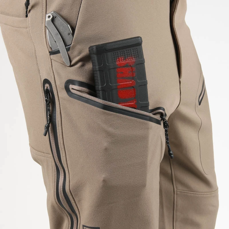 - Low profile, bonded thigh pockets