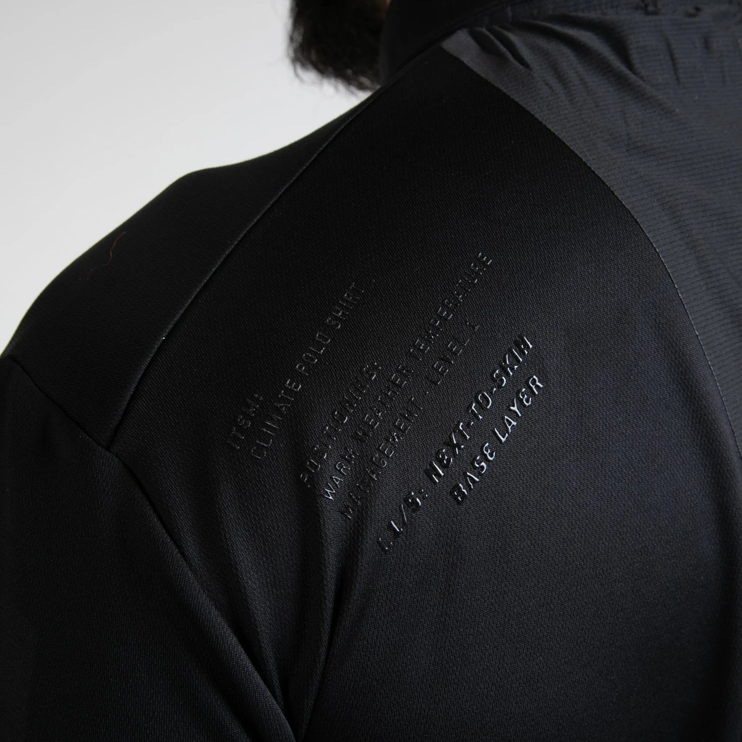 MATERIALS: Main body as Polartec® Power Dry® 100% Polyester [derived from minimum 50% recycled P.E.T. plastic], 125g/m2; Venting panels as Polartec® Power Dry® 89% Polyester, 11% Spandex, 115g/m2