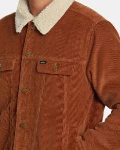 Infused with a throwback style, the RVCA Waylon Trucker Jacket features all the elements of your favorite vintage jacket with upgraded design and function for the ultimate closet staple. Made from cotton corduroy, with a sherpa collar, sherpa body lining and cotton poplin sleeve lining, this comfortable men’s trucker jacket is built with a button closure, RVCA metal shanks and button cuffs for a custom fit throughout. Finished off with two patch pockets at the chest, two welt pockets at the side and an internal pocket for all your needs, with our signature RVCA solo label at the left pocket flap.