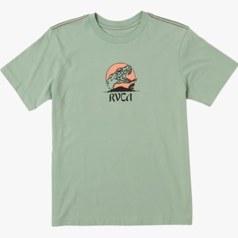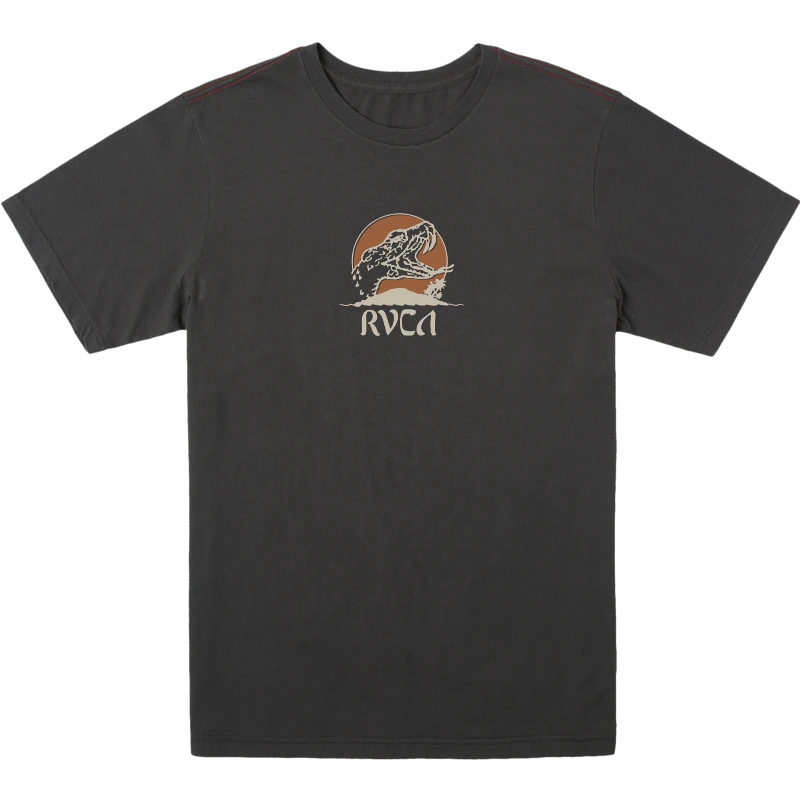 Keep it looking sharp with the RVCA Whiskey Bite T-Shirt, crafted of soft cotton fabric for a light and breathable feel. This regular-fit tee features screen-printed graphics at the chest and back, a crew neck, and the trademark RVCA red stitch.