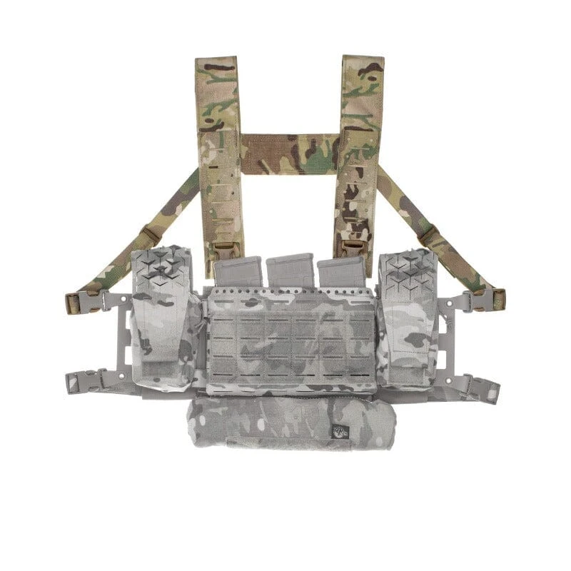 The Fat Strap MK4 is a universal H-harness solution designed to work with the Micro Fight Chassis, 34 A Split Chest Rig, and Thing 2 expansion chassis. This reduced profile design now includes an updated Squadron overlay panel with more horizontal mounting points for PTTs and other equipment, as well as shock cord holes for mounting other kit. A loop field patch on the back completes the Straps for placement of name tapes or IR Markers. Brilliance in the Basics means that we constructed these without complicated yoke systems or unnecessary features.Â