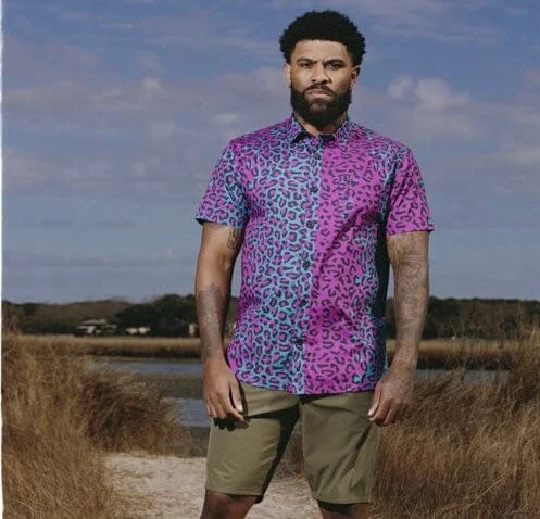ALOHA! Welcome back Miami Tiger plus 4 new colors: ZAIRE LEOPARD, TROPICAL LEOPARD, KLMK, & KLMK DARK MODE. Start off the summer ready to hit the tiki bar and hula into warm weather! Our wrinkle-resistant and lightweight stretch woven fabric is the perfect blend of poly/ cotton/ spandex. Cut with an athletic fit, this button up will look sharp wherever your adventures take you.