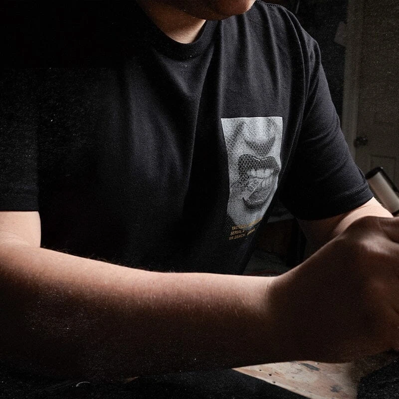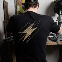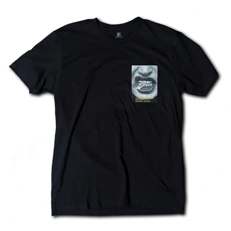 Our TD Razor Girl Tee available in Black and White has a cutthroat image on the front left chest and our TD lightning bolts added to the back.