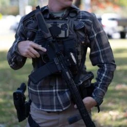 specifically tailored towards our customer: TD’s “fast-draw” access, with 2 sets of metal snaps, allow quick access to a concealed carry weapon, while reducing the chance of getting hung up on the shirt hem. Two large chest pockets, built with a secure flap closure and a handy sunglasses loop easily accommodate EDC. Small leather branding hits add extra attention to detail. The tailored fit drapes over the natural waistline, helping to conceal your firearm and extra mags. As always, we strive to give the customer value and quality in all TD products and hope you enjoy these new