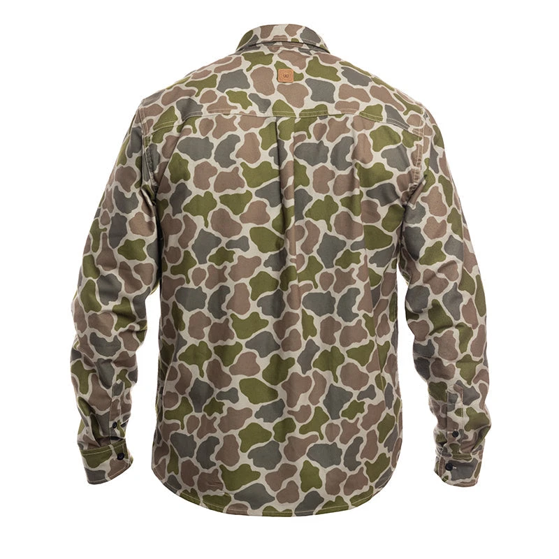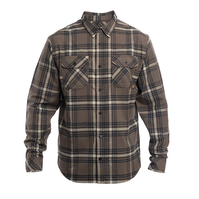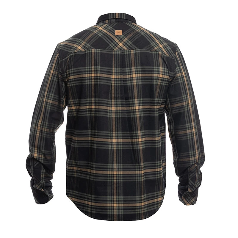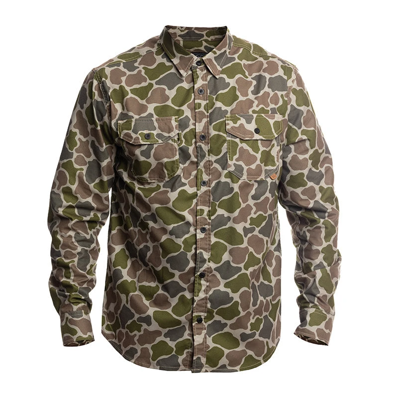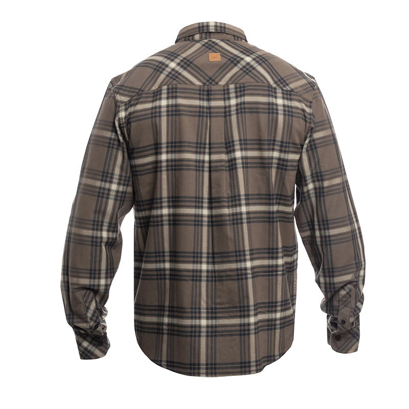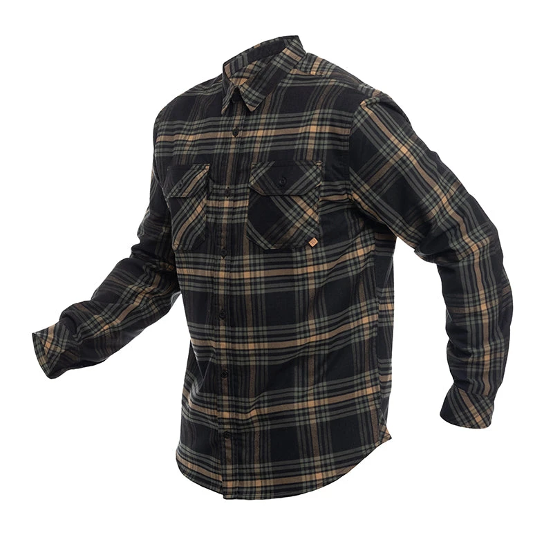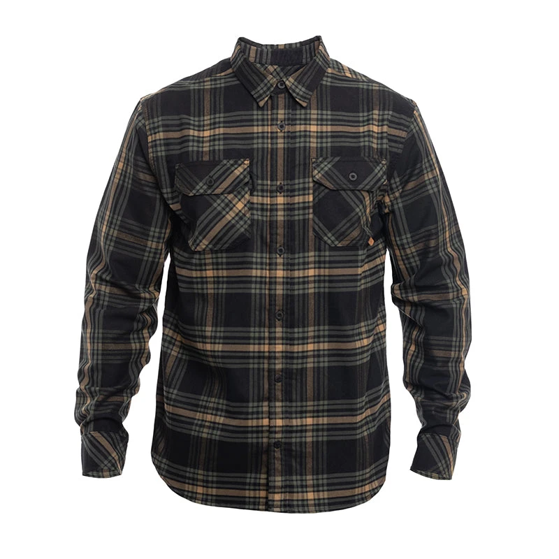 brushed flannel finish. Offered in yarn-dyed plaid or camo-printed colorways, the fabric will retain its shape after home laundering instead of shrinking down an entire size. A revised fit with 2” increased body width is sure to please, while the soft fabric delivers comfort and warmth. TD Tombstone Flannel features several important details