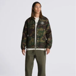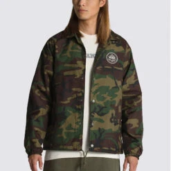 Reminiscent of retro sports jackets, the Torrey Jacket is made with a water-resistant polyester shell, polyester lining for comfort, and a classic allover camouflage print. Along with checkerboard logo and classic logo graphics at the left chest, this easy-wearing coaches jacket has a buttonfront closure, slit pockets at the hips, and a drawstring at the hem for a customizable fit. Model wearing size Medium.