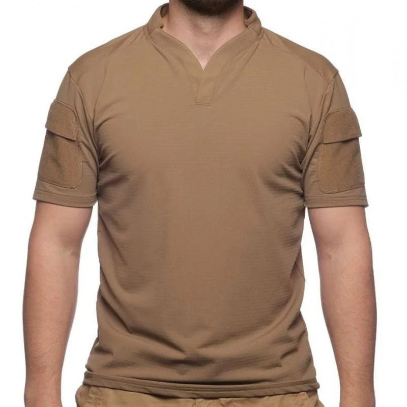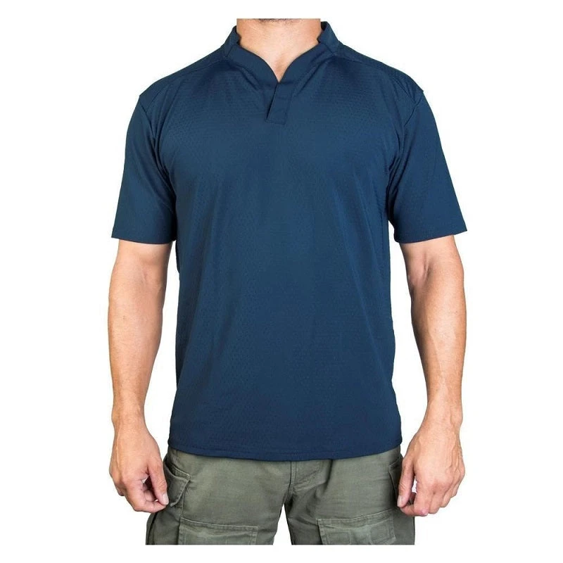 The Velocity Systems Men’s BOSS Rugby is a lightweight rugby influenced shirt that can be utilized as a hot weather range shirt, or a moisture managing base layer under armor. The rugby style collar keeps a weapon sling off the base of neck. It is an outstanding polo replacement for a department’s relaxed uniform or training day standard. The active cut is athletic and mobile; the material is comfortable and quick to dry. The BOSS Rugby comes with two envelope pockets on the sleeves that accept hook backed patches. 83% Nylon 17% Spandex. All materials and workmanship are 100% made in the USA.